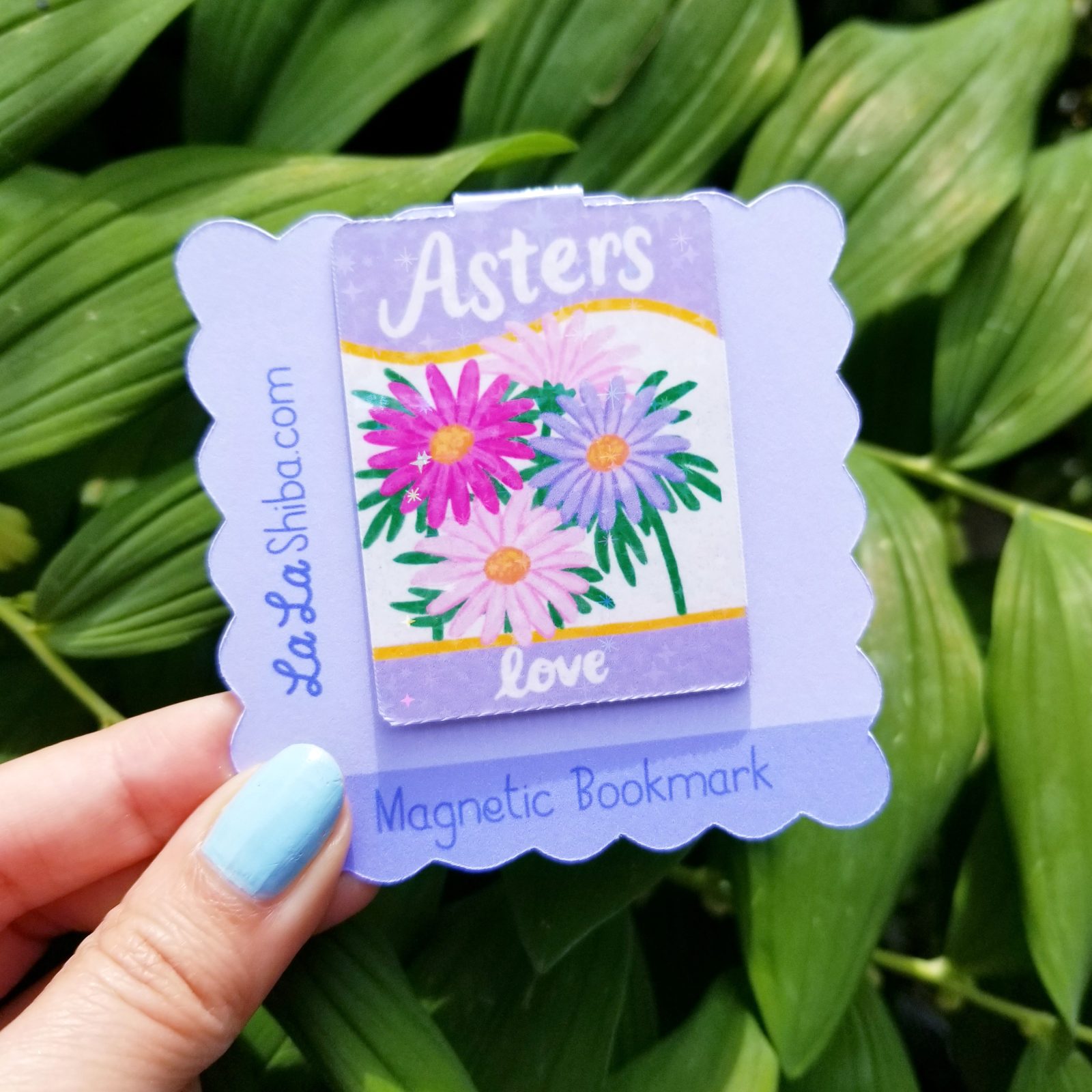 Bring a touch of nature to your reading with the Aster Flowers Seed Packet Magnetic Bookmark. Featuring hand-drawn aster blooms inspired by vintage seed packets, this lovely design celebrates love and affection. Finished with a shimmering holographic star effect and a strong magnetic closure, it’s a beautiful and practical accessory for any book lover.