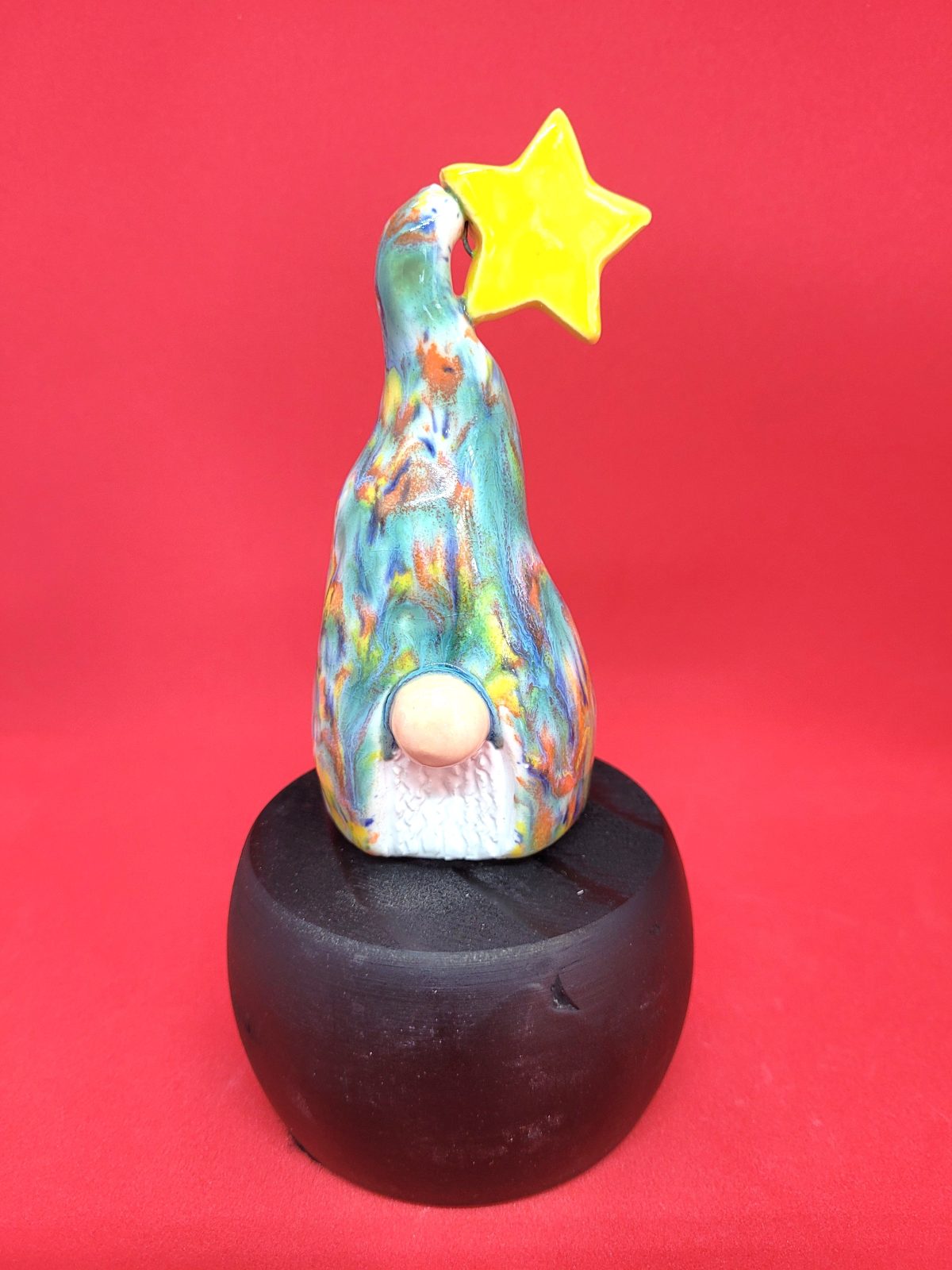 Ceramic Kaleidoscope Gnome with a star . Approx.: 12 cm tall and 80 gramsÂ