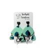These hand-crafted polymer clay earrings feature a black, heart shaped surgical stainless-steel post fitted with a two-tiered mint/turquoise leopard design dangle.Â